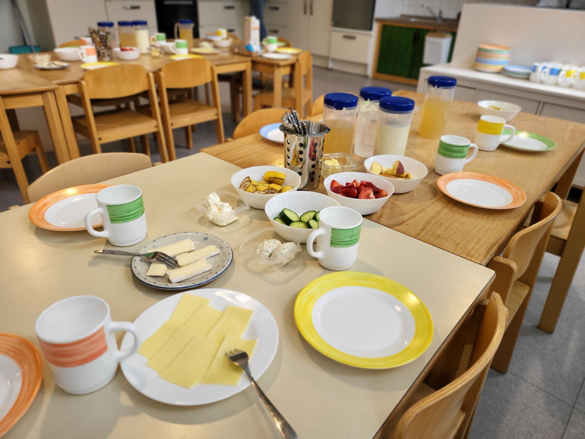 Täglich bieten wir ein vielfältiges, regionales Frühstück überwiegend in Bio-Qualität für alle Kinder an. Es ist uns wichtig, den Kindern neben der ausgewogenen Ernährung auch Tischkultur zu vermitteln.